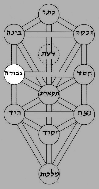 剣の5=敗北。 風の組札のGeburah(ゲブラー)。 宝瓶宮中の金星。 剣のつかが逆五芒星を形成し、多様であり、刃は、壊れて、曲げられ、感情で弱められた知性を表している。